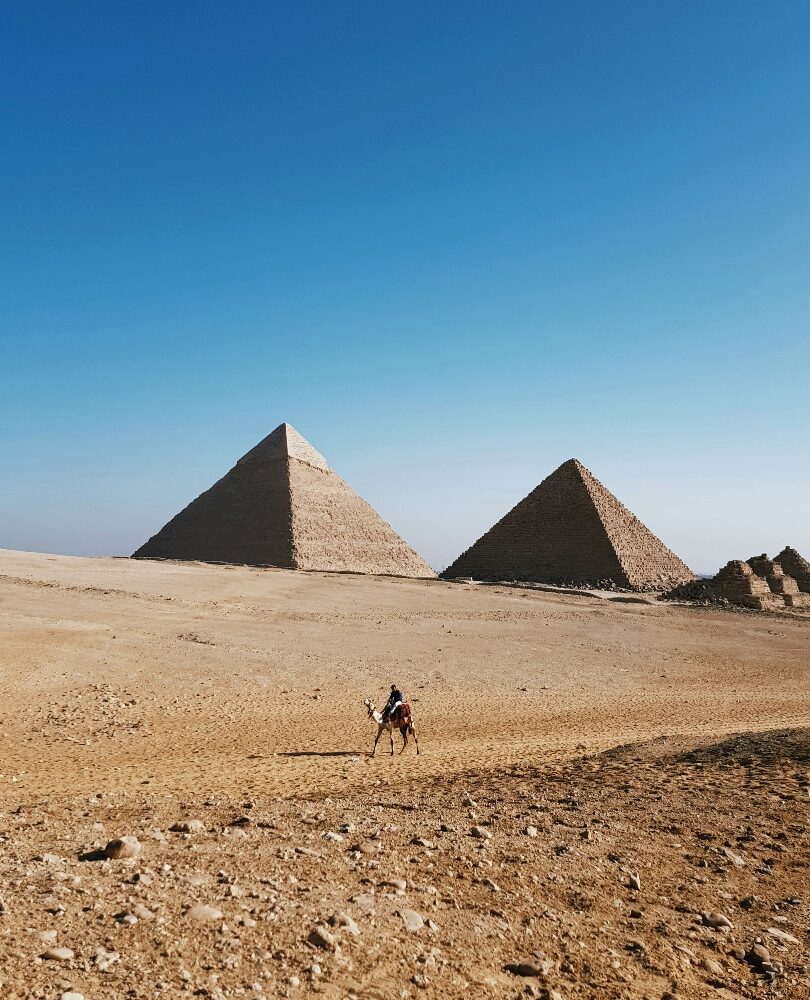 Afterwards head to Giza plateue. Visit the great pyramids of Khufu, Khafre and Menkaure. Explore these structures that have stood tall for 4500 years, and for the adventurer souls you may be able to go inside the Great Pyramid of Khufu. Then observe the nearby Great Sphinx. Next feast your stomach with a delicious lunch overlooking the pyramids then go to a nearby papyrus institute to learn how Egyptians used the stem of the papyrus plant to make sails, cloth, mats, cords, and, above all, paper, sample some papyrus papers then.